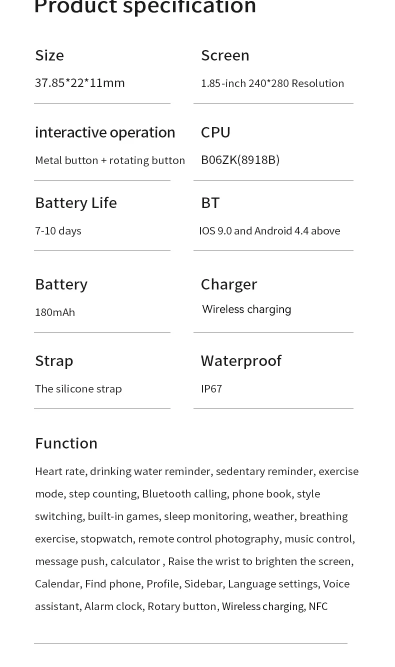 Apoie o transporte da gota de uma peça e clientes por atacado, bem-vindo ao cooperar!Nota: 1. o princípio da medição do smartwatch é completamente diferente do do equipamento médico. É apenas para referência de esportes e fitness, obrigado.